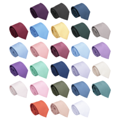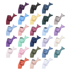Matching elasticated ties for younger boys, bow ties, pocket squares, lapel pins, and men’s sizes are all on offer.