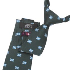 Made by hand using exquisite workmanship, the DQT Flag Ties Collection will add a statement of pride to your outfit. This premium basket weave tie features the beautifully embroidered national flag of Scotland available in 3 stylish colours.
