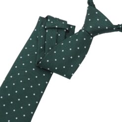 Suit up with this premium hunter green polka dot modern classic tie by DQT. Made by hand using exquisite workmanship and elegant fabric, this hunter green polka dot modern classic tie will surely be a showstopper. Wherever you will go, DQT will show off the professional and trendy side in you!